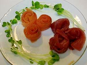 まぐろとサーモンの薔薇カルパッチョ レシピ 作り方 By Hottyoi 楽天レシピ